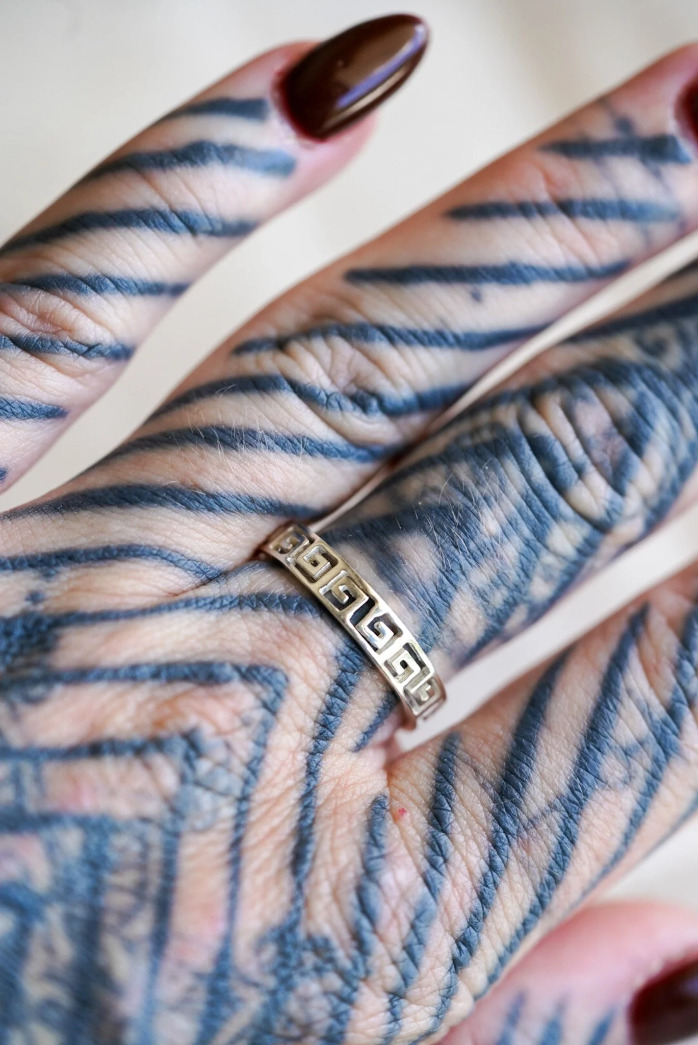 ‘Niaa’ ring crafted in solid sterling silver and made to order in solid 9ct yellow gold. ‘Niaa’ is a fusion of history and attitude, featuring an iconic Greek key pattern that screams timeless rebellion. It’s a symbol of endless paths, unbreakable spirits, and the ones who refuse to follow the crowd.